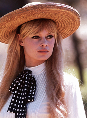 - Su icónica melena rubia: “Bueno, es quizás su imagen más reconocible. Melena larga, despeinada y con mucho volumen. Ella misma se cardaba el pelo porque le gustaba ese look salvaje y rebelde que explotó en las películas de Vadim, Gordard y Louis Malle. Siempre llevaba la parte superior abultada con ondas suaves, un look asociado con la feminidad y la sensualidad. Por supuesto, luego le añadía los pañuelos, cintas, diademas y sombreros que ayudaron a forjar su imagen de icono de la moda. De hecho, ella creó el look Riviera (marinero) en Saint Tropez”, comenta Lesur.