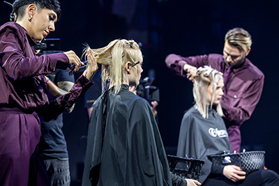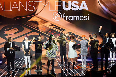 A continuación, el equipo Italian Style Framesi reinterpretó la energía de los años 70 con una puesta en escena inspirada en el mítico Studio 54 de Nueva York. El cierre del primer día llegó de la mano de Hai(r)evolution, con Giovanni Damiani, Cristian Sorsolli, Stefania Macri y Simone Virdis, quienes representaron la fusión entre Oriente y Occidente con creaciones inspiradas en los años 80.