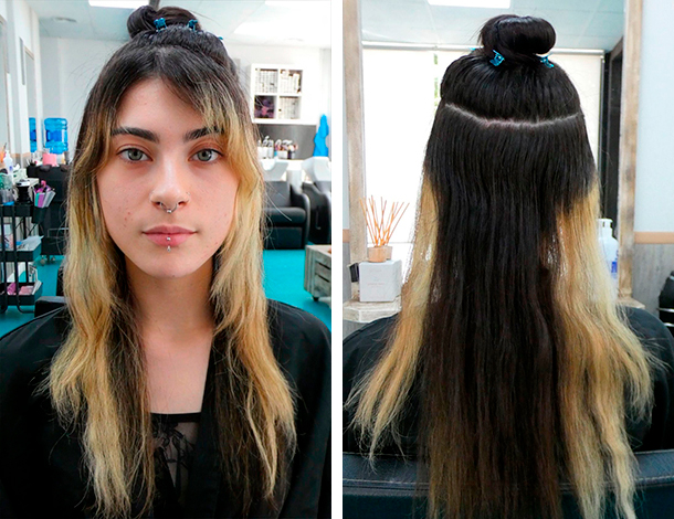 -Enjuaga, lava con champú técnico y seca completamente. - Aplicación del color negro