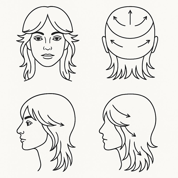 - Triángulo frontal (flequillo amplio).