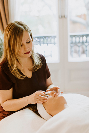 - Después, la sesión del tratamiento se construye como un proceso dinámico en el que se combinan técnicas manuales, activos cosméticos y estímulos específicos seleccionados en función del estado cutáneo y de los signos que manifiesta la piel como consecuencia de su exposición al entorno. No hay secuencias fijas ni pasos estandarizados: cada gesto tiene un propósito y responde a una lectura previa de la piel.