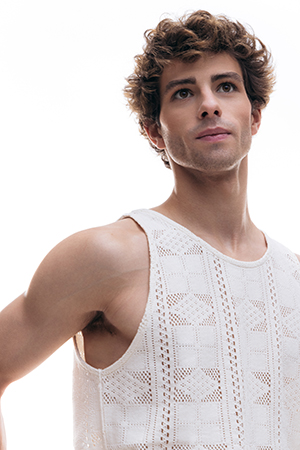 Romantic Waves. Pablo luce un corte de cabello suave y romántico con un Sun Light que potencia sus rizos y crea relieve a través del color. Versatilidad en las opciones de peinado para dramatizar la imagen a través de un wet look.