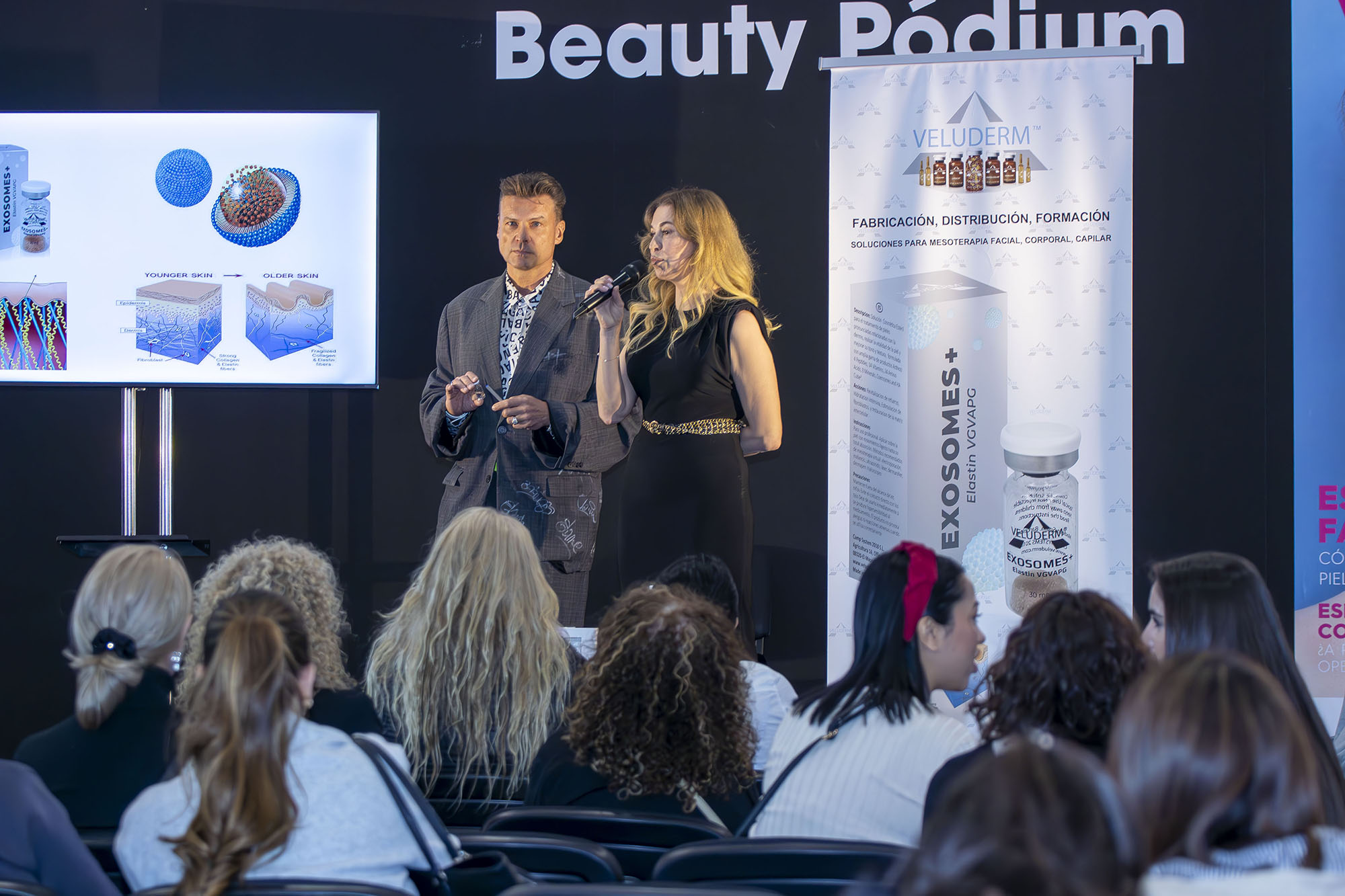 El pabellón se estructuró en distintos espacios y escenarios que reflejaron la diversidad y evolución del sector. La Pasarela de Peluquería fue uno de los grandes focos de atención, junto al Pódium de Estética y Tratamientos Avanzados, el Beauty Pódium, el Pódium de Barbería y el Pódium de Digitalización y Negocios, donde se abordaron contenidos clave para el crecimiento empresarial y la profesionalización del sector.