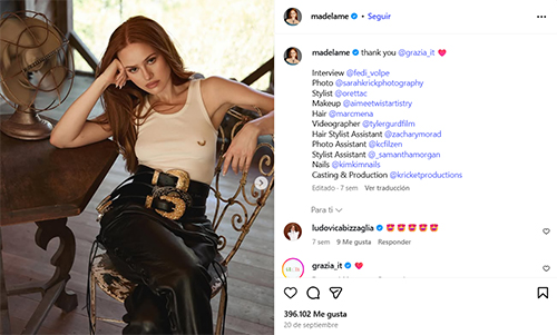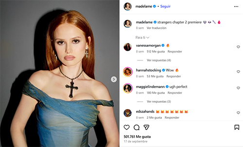 El tono de Madelaine Petsch se sitúa entre un rojo cobrizo y un pelirrojo natural con matices dorados, una combinación que aporta calidez y luminosidad al rostro. Según los especialistas en visagismo, este color favorece especialmente a las pieles claras con subtonos cálidos o neutros, y a quienes tienen ojos verdes o avellana, ya que realza el contraste natural y aporta viveza a la mirada. En cambio, en pieles muy frías o con subtonos azulados puede endurecer los rasgos o crear un efecto poco natural si no se equilibra correctamente.