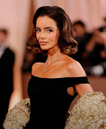 La presentadora y modelo ha optado por una melena trabajada con ondas glam muy pulidas, con un volumen bien estructurado y un acabado brillante que recuerda al glamour clásico de Hollywood. La raya lateral profunda y las puntas perfectamente moldeadas enmarcan el rostro y realzan sus facciones, aportando fuerza y sofisticación al conjunto, en opinión de Ordás. “Es un peinado muy elegante, con presencia, que funciona especialmente bien en alfombra roja porque equilibra sensualidad y refinamiento. Un look impecable, muy favorecedor y ejecutado con gran precisión”.