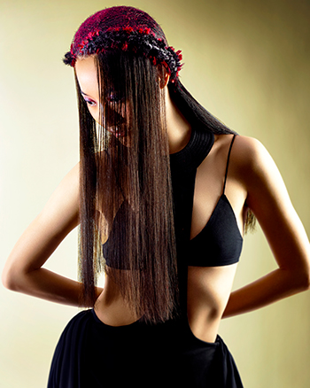 Anna Pacito se ha inspirado en las texturas naturales y el futurismo más elegante. Cada look expresa una peluquería viva, esculpida, vanguardista y etérea a la vez. Lo podemos comprobar en su forma de moldear los cabellos afros, donde no faltan postizos que dan ese toque artístico tan original. Esa visión de trascender lo cotidiano se traslada al resto de looks: una melena XL ultralisa y una midi con las puntas hacia dentro.