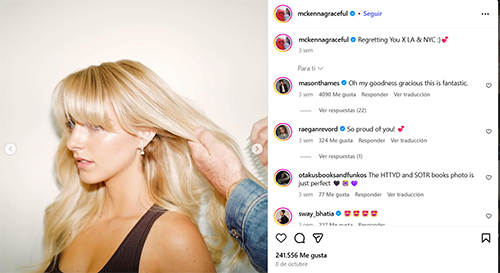 El estilo de McKenna Grace refuerza esa dualidad de joven promesa: por un lado, el rubio platino o dorado claro refuerza la idea de frescura, luminosidad y “ángel” cinematográfico; por otro, sus peinados en alfombra roja —ondas suaves, volumen controlado, raya lateral o al medio— muestran a una joven estrella que ya juega con las reglas de la moda. Su estilista comenta que, para una premiere reciente, optaron por un “blow-out década de los ochenta” para subrayar su estatus de “It Girl del momento”. Así, el rubio no es solo color, sino “marca”, y la mezcla de inocencia visual + madurez interpretativa la convierte en una artista a seguir.
