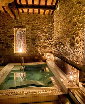El spa es un espacio amplio, decorado con tonos cálidos y paredes de piedra, donde se respira la historia del vino. Sus instalaciones incluyen: piscina jacuzzi, sauna, baño de vapor (ideal para tratar problemas respiratorios y de movilidad), cama de hidromasajes y cascadas de agua en una antigua tina de vino como complemento ideal de la sauna y del baño de vapor.