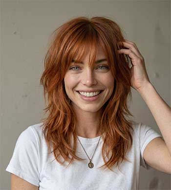 El flequillo también juega un papel importante en este estilo. Puede presentarse en versiones abiertas, tipo cortina, o más irregulares, integrándose con el resto del corte para reforzar esa sensación de fluidez y naturalidad. No es un elemento obligatorio, pero sí muy habitual dentro del concepto shag.